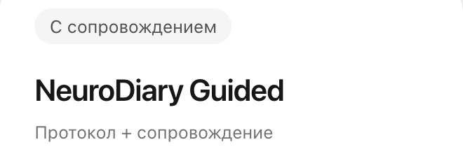• Более глубокий формат с сопровождением и персонализированной интерпретацией для тех, кто хочет пройти NeuroDiary с поддержкой.